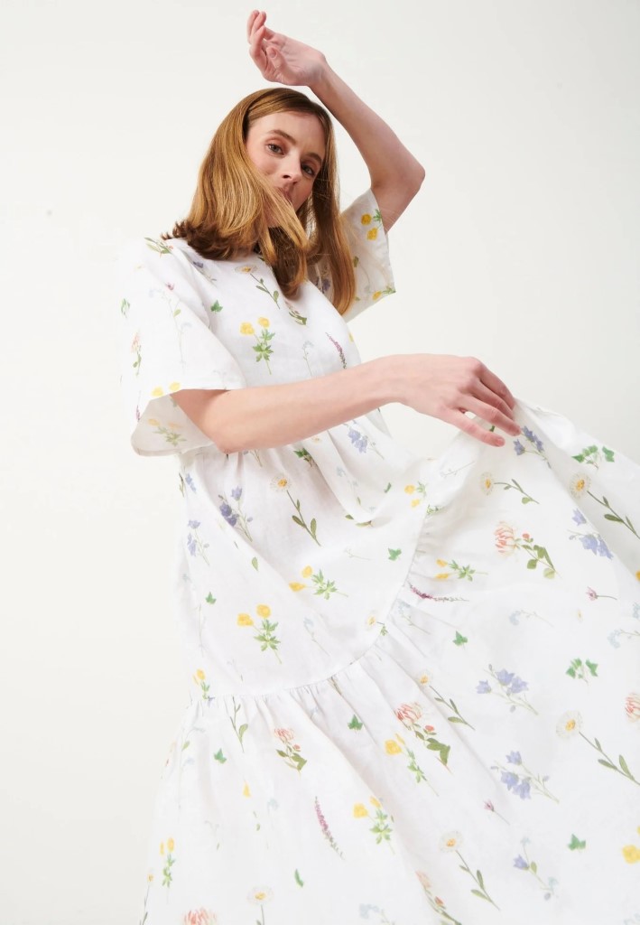 – Fabienne er en yndig og avslappet kjole laget av 100% lin.