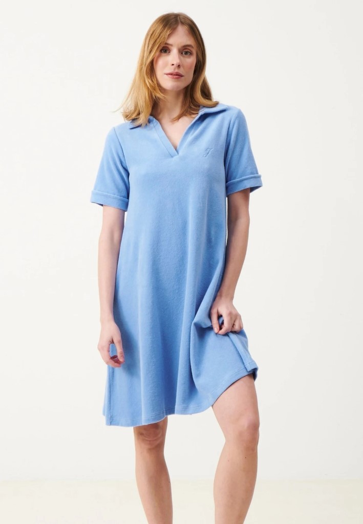 Lyseblå Martine frottèkjole med krave og korte ermer