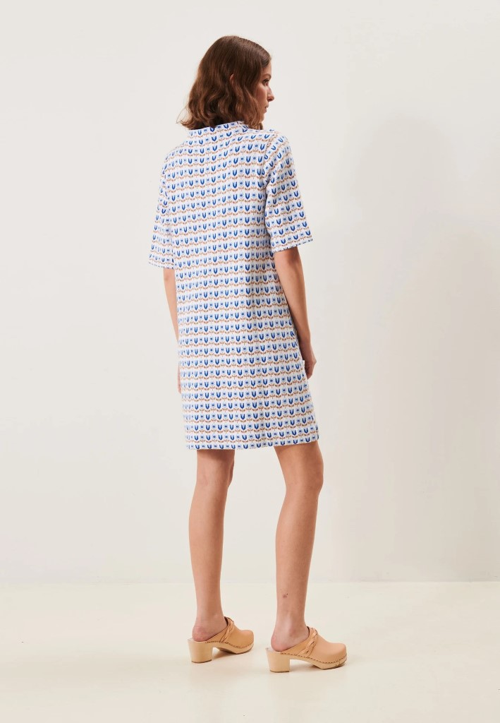 – Cassidy er en en myk og behagelig kjole laget i 100 % bomull, med et småmønstret design med et rent og grafisk uttrykk.
