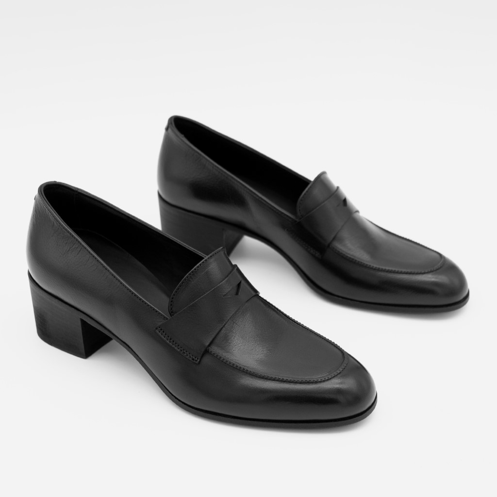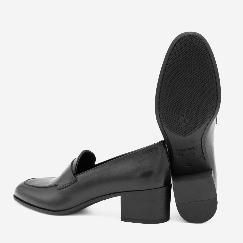 Sort klassisk loafer med moderat hæl