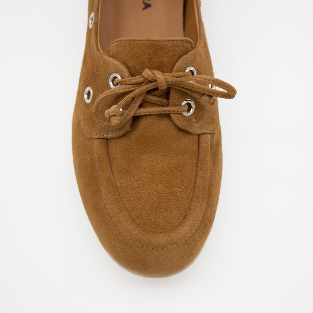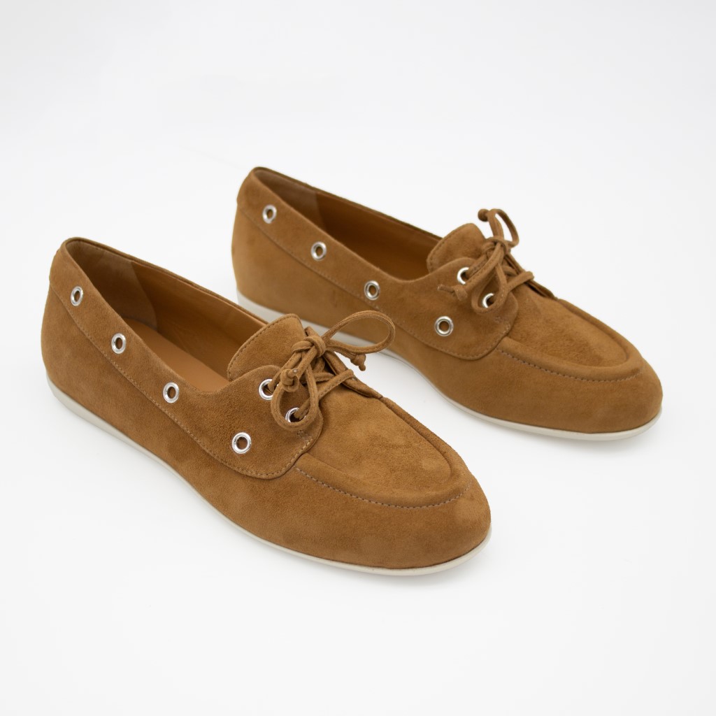 Sjarmerende og feminin «seilersko» i karamellfarget semsket