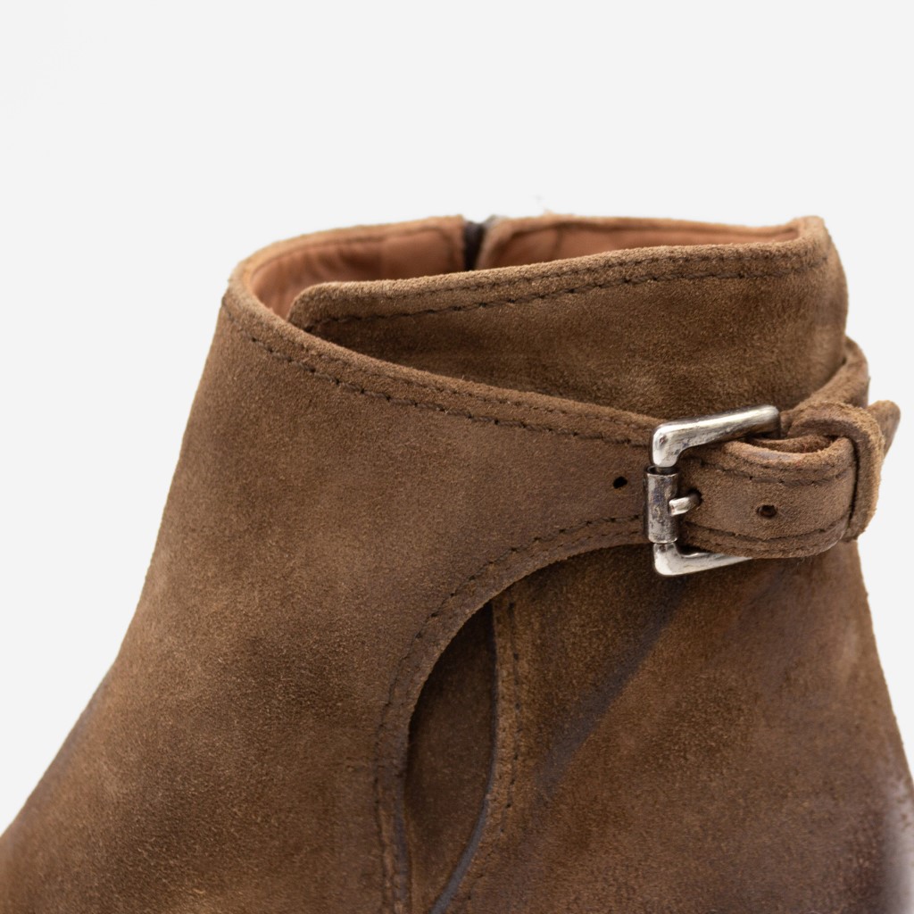 – Mykt rubbet skinn som former seg perfekt etter foten. Glidelås på innsiden.