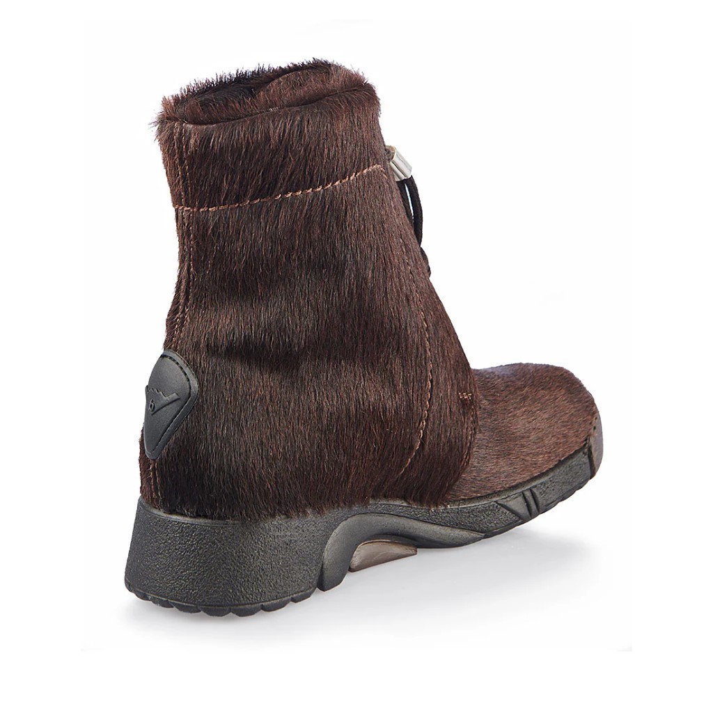 Sjokoladebrun ankelstøvel med knyting og ekte saueskinnsfor