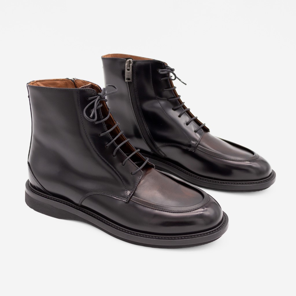 – Mykt skinn med blank overflate som former seg perfekt etter foten. Lisser og glidelås på innsiden.
